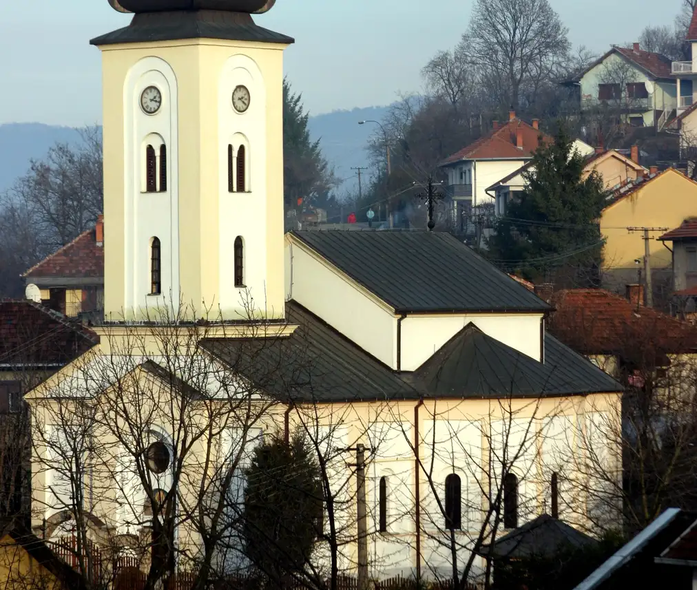 Această biserică a fost inundată în timpul construirii hidrocentralei Porțile de Fier.