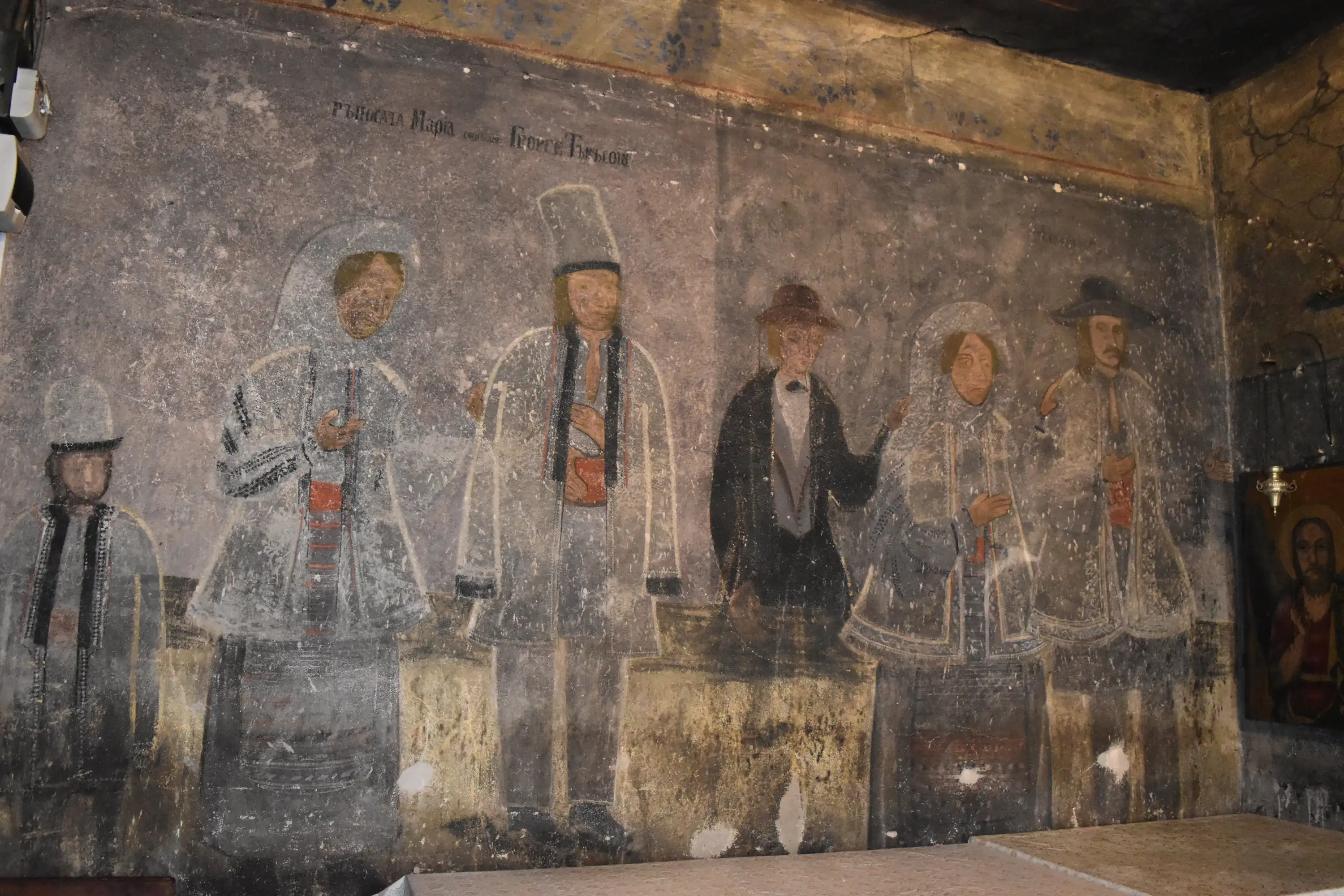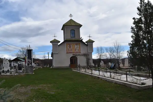 Description: The parish church in Titerleşti is dedicated to “Saint Voivodes Michael and Gabriel “and it is declared a historical monument. On the spot where the church is built, there were no previous buildings. The church was built with the help of the inhabitants of Titerleşti and Bratilov villages, between 1862-1863, during the priest Iordache Constantin, painted on the right-hand wall at the entrance to the church, together with the priestess Floarea and their son, Constantine. It is a church founded in the time of Prince Alexandru Ioan Cuza, through the contribution of the Hungarian families who had settled in Bratilov and Titerleşti, at that time. They had come from Transylvania, from Poiana Sibiului and since they settled in these places, decided also to build a church. The church was built with the help of the Serbian craftsmen, whose leader is painted at the entrance to the porch. A painting which years ago used to be found in the porch of the church, but which does not exist today, represented a shepherd of sheep, a clear sign that people have been in these places for years. What seems amazing about this church is that such a construction was completed in just one year, but unfortunately there are no documents to elucidate this aspect. However, there is a document that was kept in the church, framed by priest Predescu, on September 9th, 1982, in which he writes that the church was built of stone, with thick walls of 1 meter and that it has the form of a ship. The old church bell was hidden during the war and has not been found since. The locals believe that someone in the village told the Germans where the bell is, and they took it and melted it. The current bell of the church was brought by the ex-mayor of Orzeşti Commune (Titerleşti used to be part of this commune too), for whom the bell was tolled for the first time at his death. In the narthex, together with the priest’s family, during which the dwelling was built, are also painted all of the church builders, dressed in folk costumes. They are painted in traditional costumes, whose details can easily be distinguished. It is one of the few churches that has painted within it all its founders. One of the founders appears painted with 3 hands. It may have been the painter’s mistake, but this issue has not been exempt from many questions that arise even today in front of the painting. There are some painted wood icons in the church, dating from 1909 -1910, which have an intense blue background, just like the famous blue of Voroneţ. So far, it has not yet been discovered with what kind of paint they are made of. On the sides of the church are painted St. Prophet John and the Emperors Constantine and Helena, probably dating from the end of the 19th century, when the church was painted. In the nave of the church, on both sides of the thick walls, there are two framed paintings in which the heroes of the First and Second World Wars are mentioned. The diaconal doors of the church have recently been replaced with doors carved with the motif of the vineyard, having on the upper side, The Archangels Michael and Gabriel, painted in the vivid colors. The old doors were framed and placed at the entrance to the church in the porch, as they have preserved quite well.