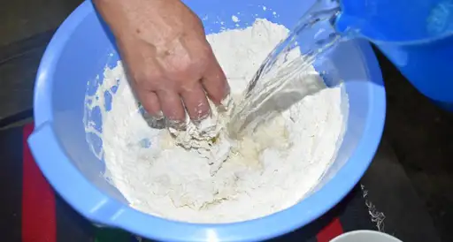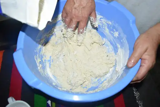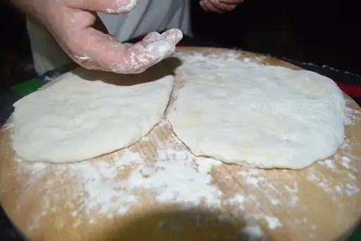 Method of preparation: Place the flour in a dish over which the yeast is added and gradually the warm water. Knead the dough and after leaven it for 45-50 minutes. The dough is divided into 6-8 equal parts. Each piece is stretched out with the flipper as much as the size of the frying pan. Put the pan over the cooker stove, greased with oil. Place the bread in the pan and turn from side to side until it is tenderly browned. The bread can be served hot or cold, according to your preference.
