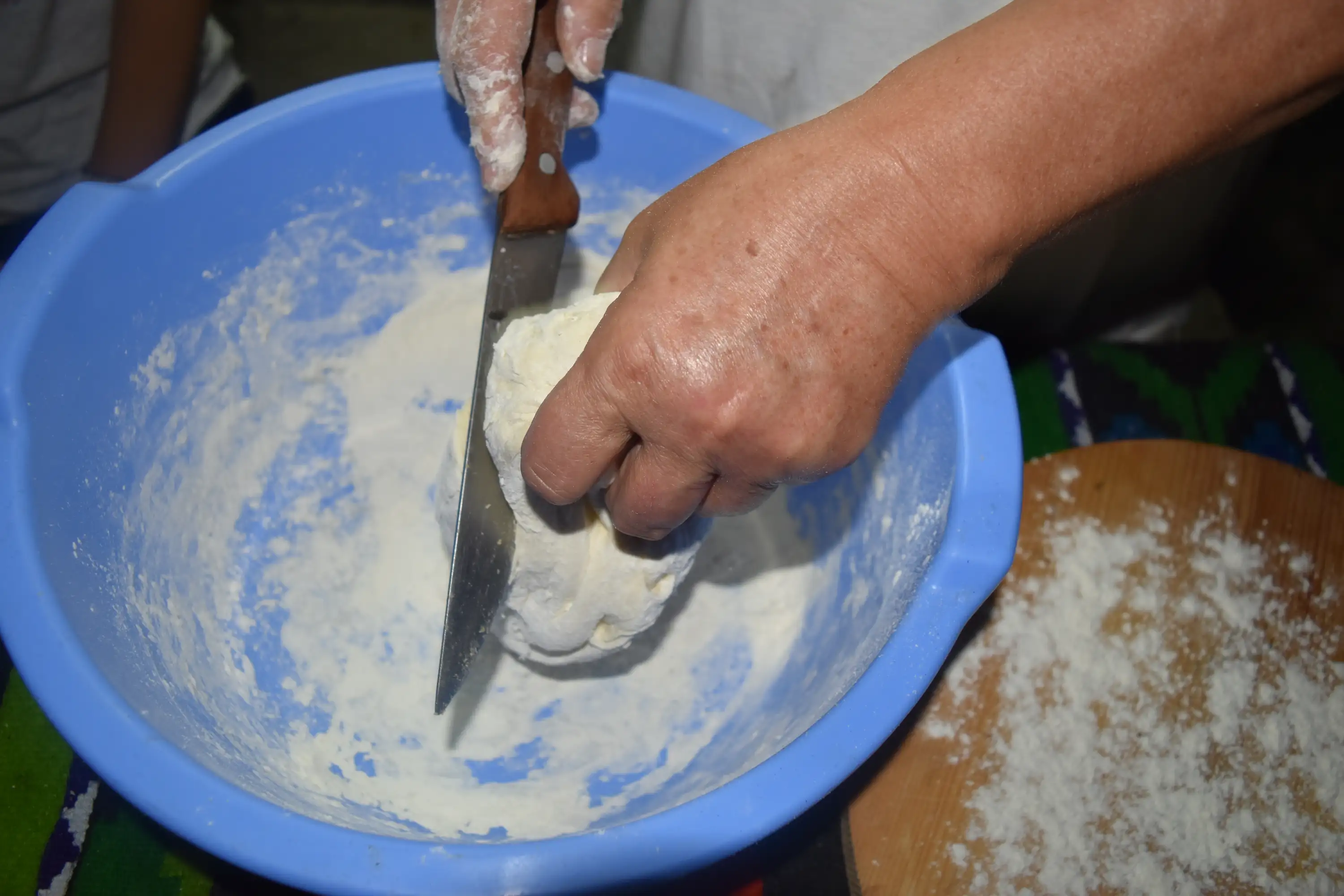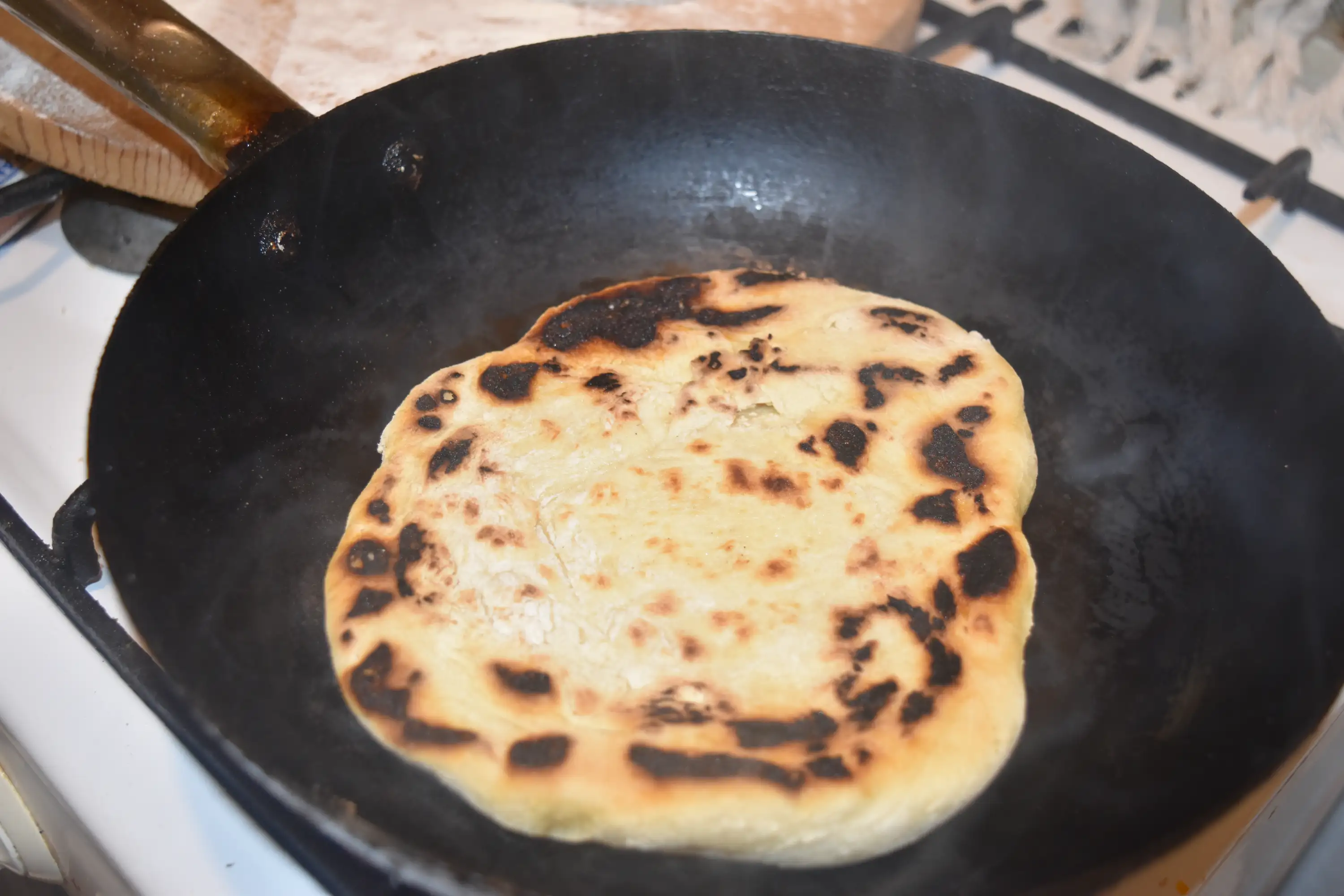 Method of preparation: Place the flour in a dish over which the yeast is added and gradually the warm water. Knead the dough and after leaven it for 45-50 minutes. The dough is divided into 6-8 equal parts. Each piece is stretched out with the flipper as much as the size of the frying pan. Put the pan over the cooker stove, greased with oil. Place the bread in the pan and turn from side to side until it is tenderly browned. The bread can be served hot or cold, according to your preference.
