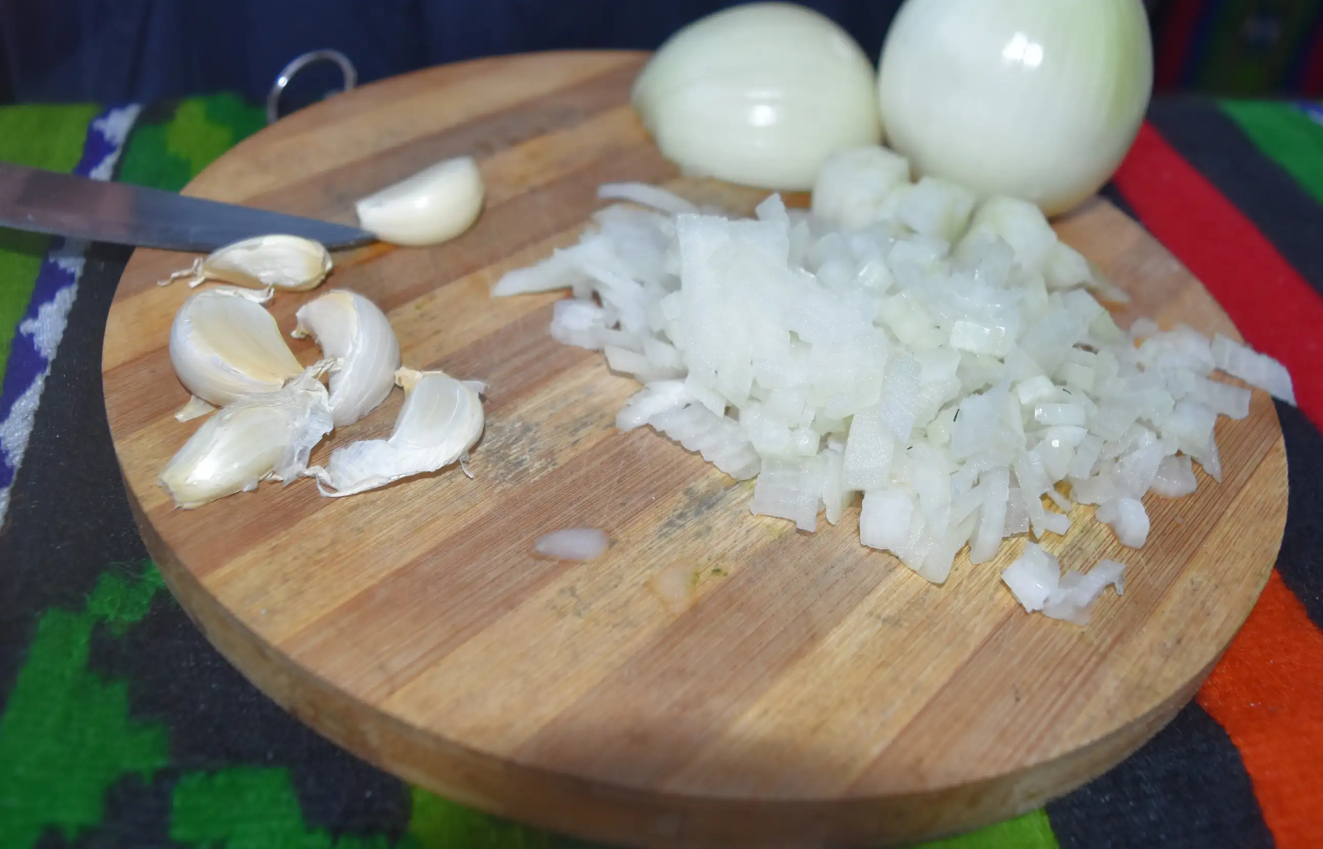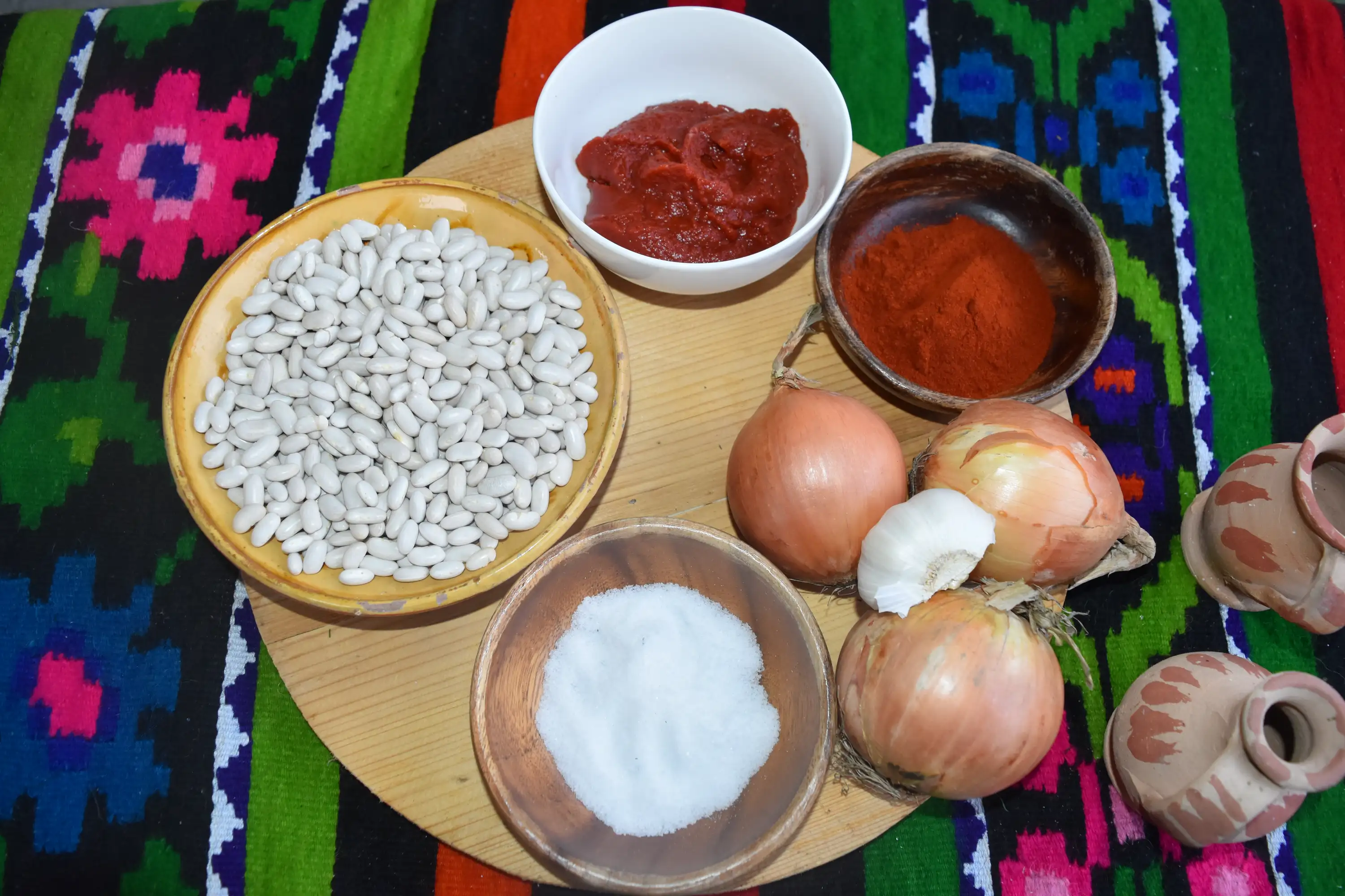 Ingrediente: 1 kg fasole uscată, 2-3 cepe, boia dulce, 3-4 căței usturoi, 5-6 roșii proaspete sau din bulion, sare după gust