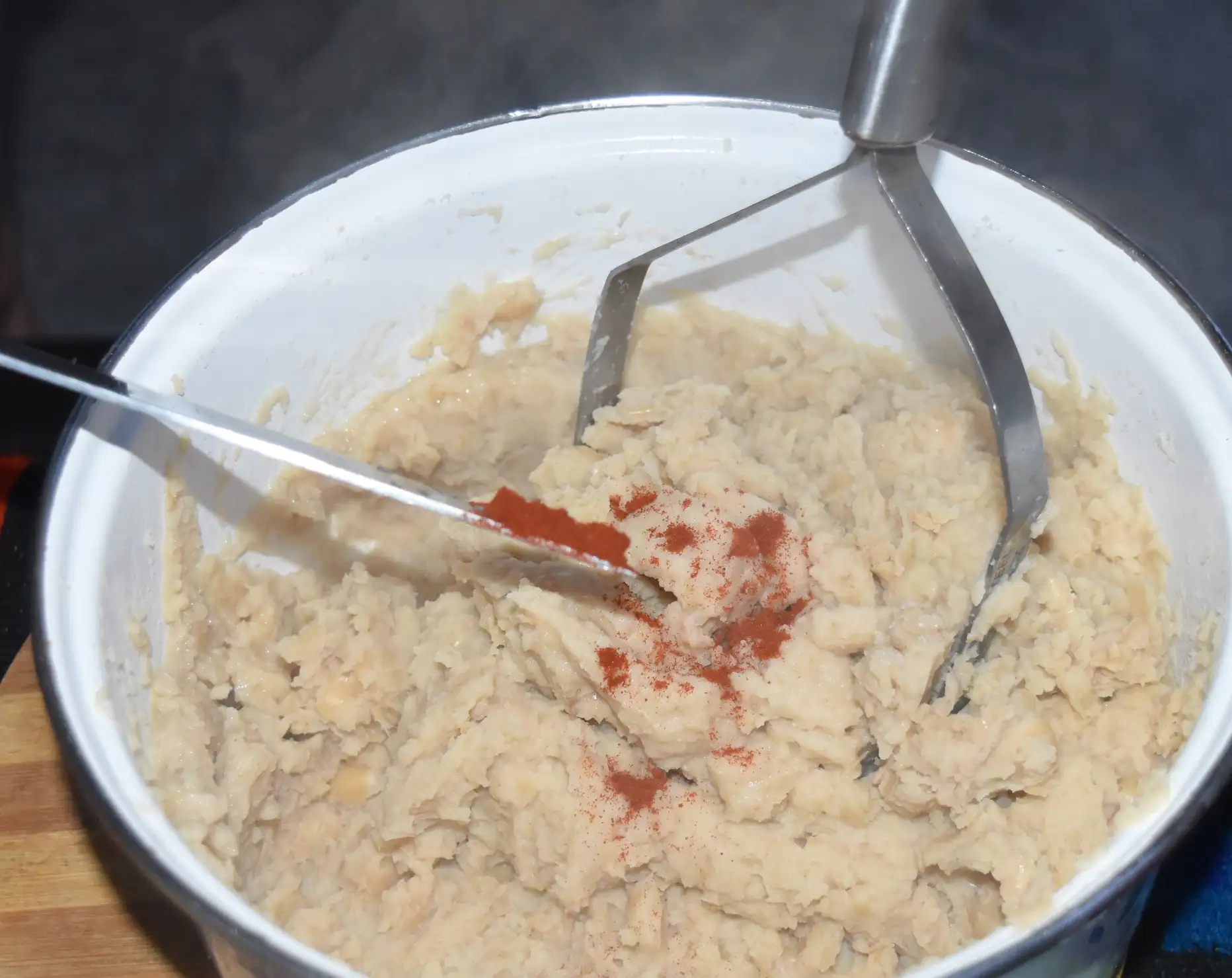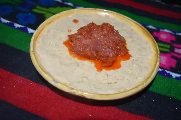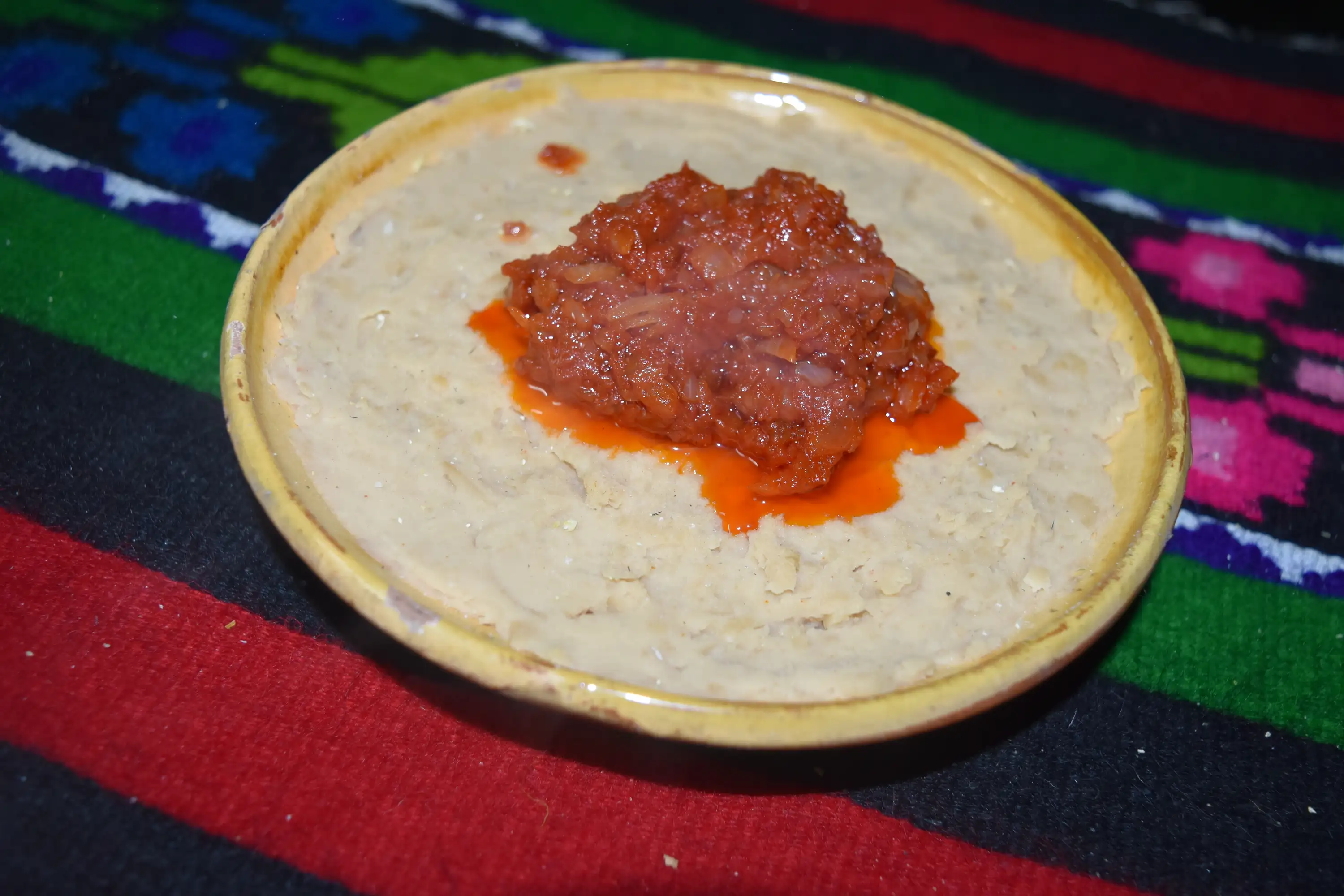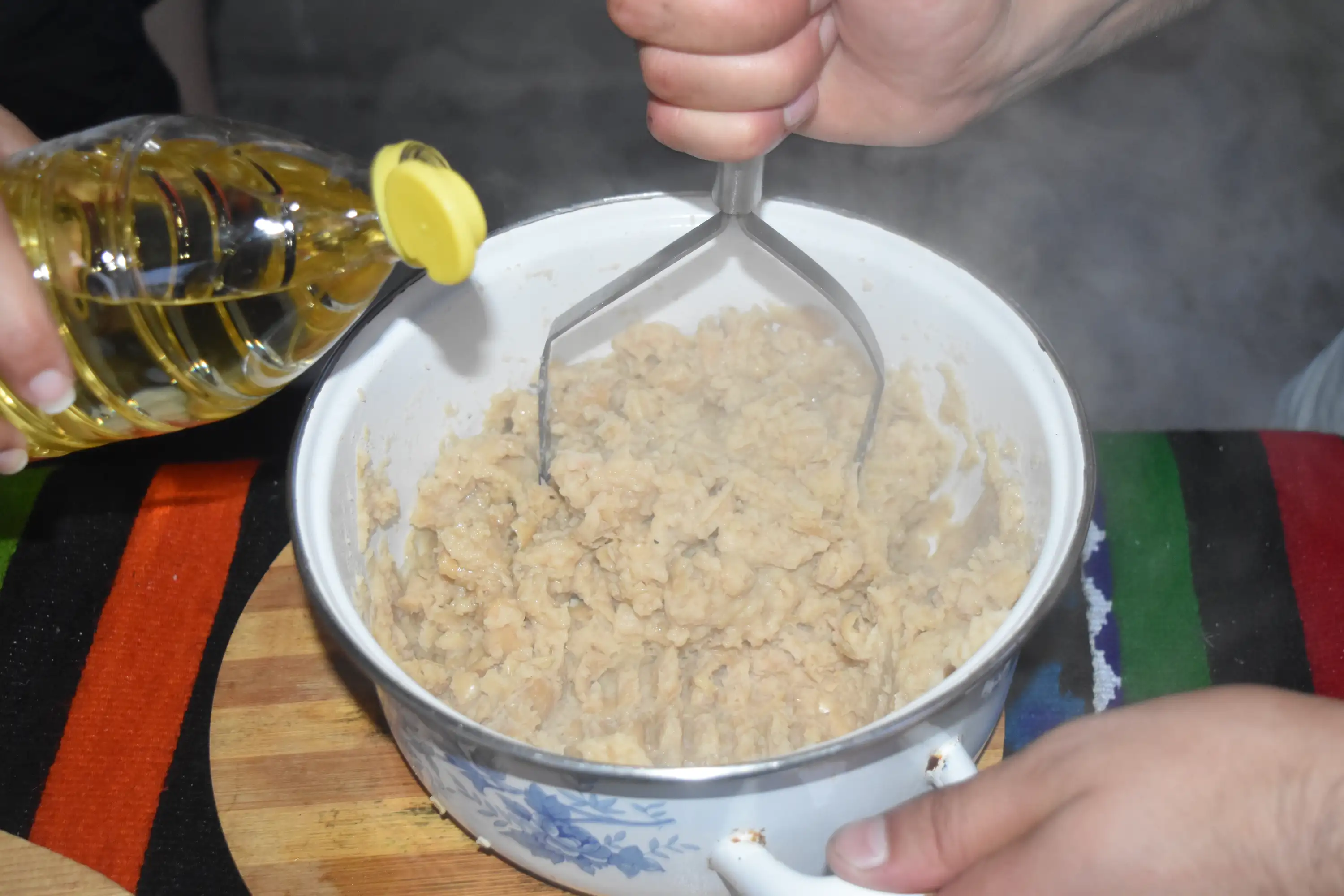 Metoda de preparare: Fasolea se pune la fiert. Se lasă să dea câteva clocote, se aruncă apa în care a fiert, se pune altă apă și se dă din nou la fiert. Se fierbe până începe să se zdrobească ușor. Când e bine fiartă, se aruncă apa. Se bate cu un tel până devine o pastă. Se adaugă ulei și sare după gust, usturoiul zdrobit și un vârf de cuțit de boia dulce. Ceapa se toacă mărunt și se călește în ulei până se rumenește. Se adaugă un vârf de cuțit de boia dulce, se amestecă bine. Fasolea se pune în castroane și se lasă la răcit. Când s-a răcit, deasupra se adaugă prăjeala de ceapă.