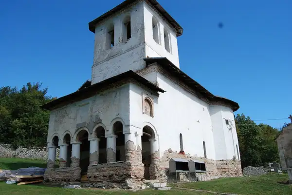 Arhitectura simplă a bisericii îmbină stilul epocii lui Matei Basarab, caracterizat prin construcţia impunătoare, cu turla clopotniţei pe pronaos, prin coloane de cărămidă circulară şi scara clopotniţei pe peretele nordic, cu stilul brâncovenesc din secolul al XVIII-lea, noutatea fiind pridvorul sprijinit pe coloane în arcade, de asemenea şi catapeteasma sculptată.