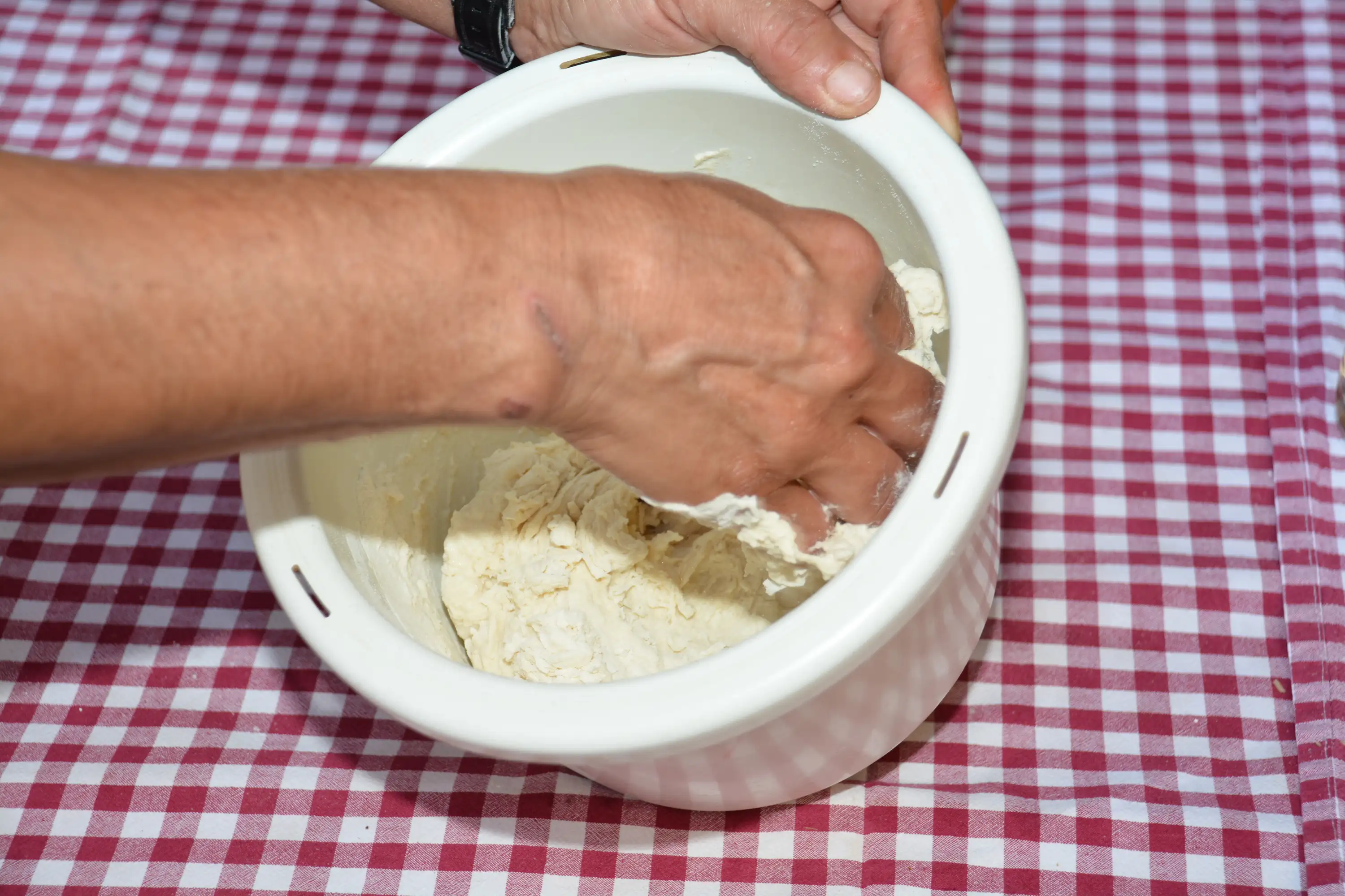 Ingrediente: 500 gr de făină, 150 ml de apă, un cub de drojdie, o linguriță de sare și o linguriță de