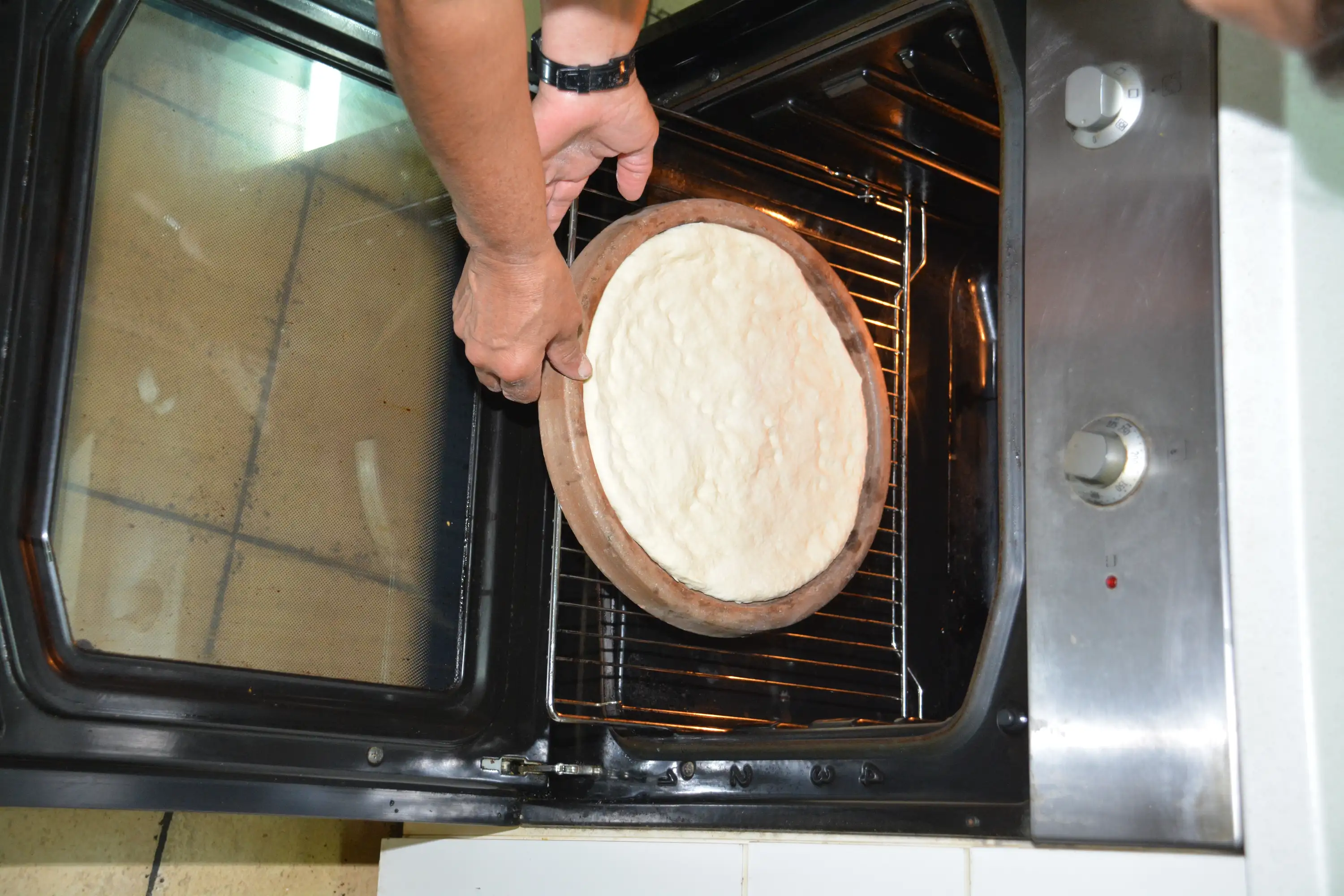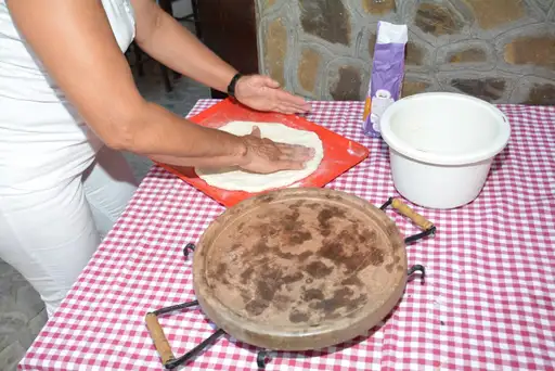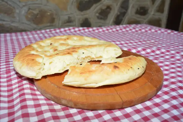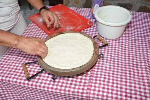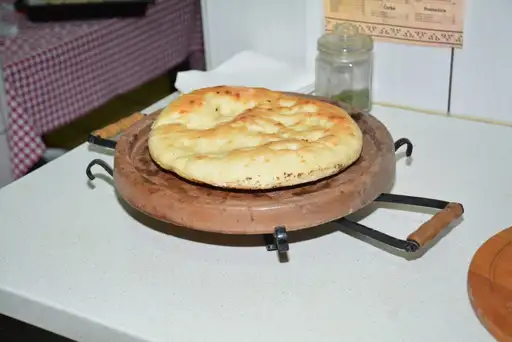 Metoda de preparare: Se dizolvă sarea și zahărul într-un vas cu apă caldă. Se adaugă drojdia și făina. Se face aluatul și se lasă timp de 30 de minute. Apoi, se întinde aluatul în vasul de argilă preîncălzit, presărat anterior cu făină. Se pune capacul de lut / metal cu cărbuni pe vasul de lut pe care ați întins aluatul. Se coace timp de 5 minute.