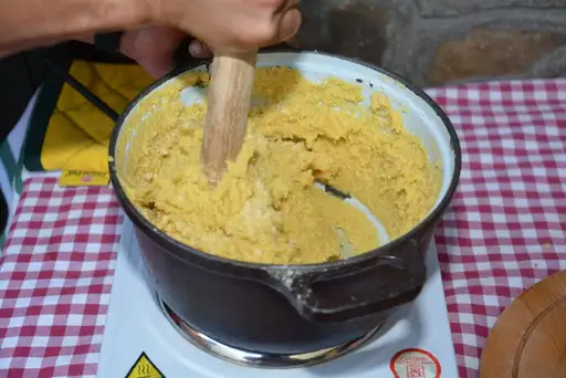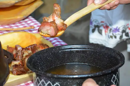 Metoda de preparare: Se taie carnea de porc în bucăți mici și se pune la saramură cu condimente uscate(numai sare și usturoi). Cârnații se prepară din resturile de porc, sare și usturoi. Carnea și cârnații sunt afumați la fum rece sau în șemineul caselor vechi. Afumatul cu tiraj este un proces mai lung și durează mai mult de 30 de zile. Când carnea și cârnații sunt uscați complet, se mai coc (gătesc) în untură topită. Carnea și cârnații se pun într-o oală de lut și se toarnă grăsime peste ei. Oala este completată cu ardei gras și legată cu o funie. Carnea (pastrama) preparată în acest fel, va ține până anul următor. Carnea, cârnații și grăsimea sunt folosite pentru gătit, prăjit sau ca fel de mâncare special. Se iau carnea și grăsimea din oala de lut și se încălzesc. Se pregătește mămăliga și se prăjesc ouăle. Se servește cu brânză, ceapă și usturoi.