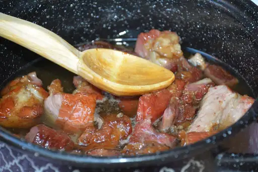 Ingrediente: Carne de porc, cârnați de casă (așa numitul “krnac” umplut cu bucățele de carne