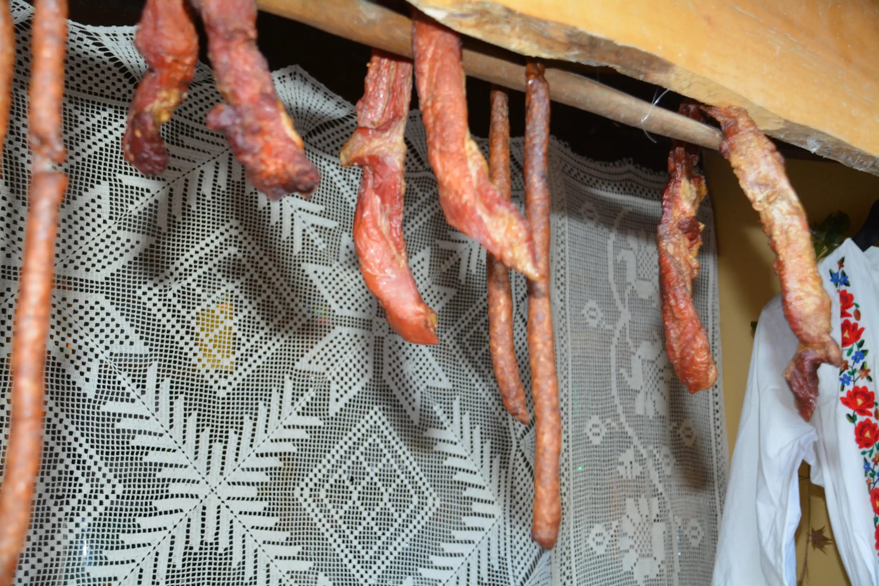 Metoda de preparare: Se taie carnea de porc în bucăți mici și se pune la saramură cu condimente uscate(numai sare și usturoi). Cârnații se prepară din resturile de porc, sare și usturoi. Carnea și cârnații sunt afumați la fum rece sau în șemineul caselor vechi. Afumatul cu tiraj este un proces mai lung și durează mai mult de 30 de zile. Când carnea și cârnații sunt uscați complet, se mai coc (gătesc) în untură topită. Carnea și cârnații se pun într-o oală de lut și se toarnă grăsime peste ei. Oala este completată cu ardei gras și legată cu o funie. Carnea (pastrama) preparată în acest fel, va ține până anul următor. Carnea, cârnații și grăsimea sunt folosite pentru gătit, prăjit sau ca fel de mâncare special. Se iau carnea și grăsimea din oala de lut și se încălzesc. Se pregătește mămăliga și se prăjesc ouăle. Se servește cu brânză, ceapă și usturoi.