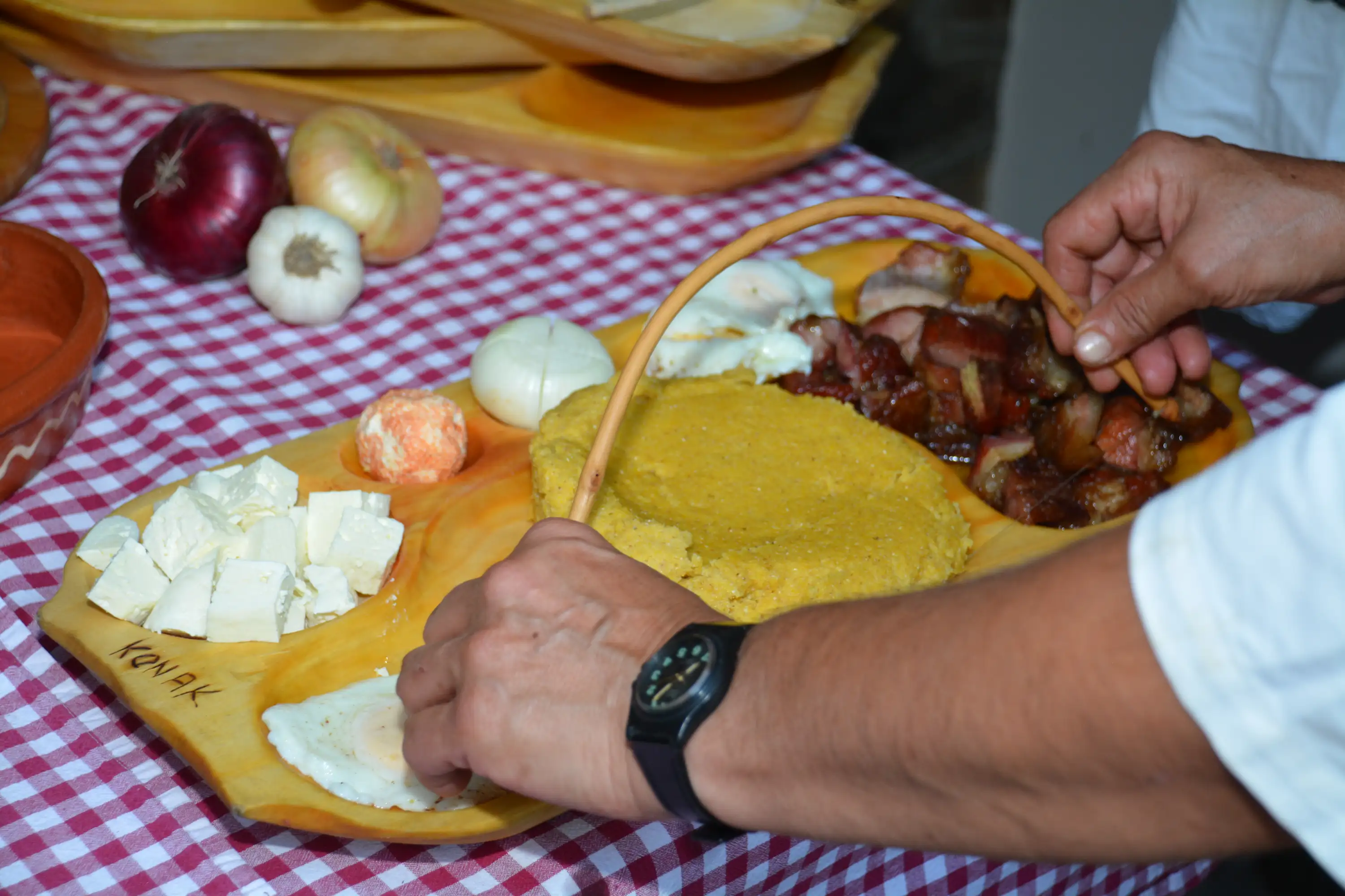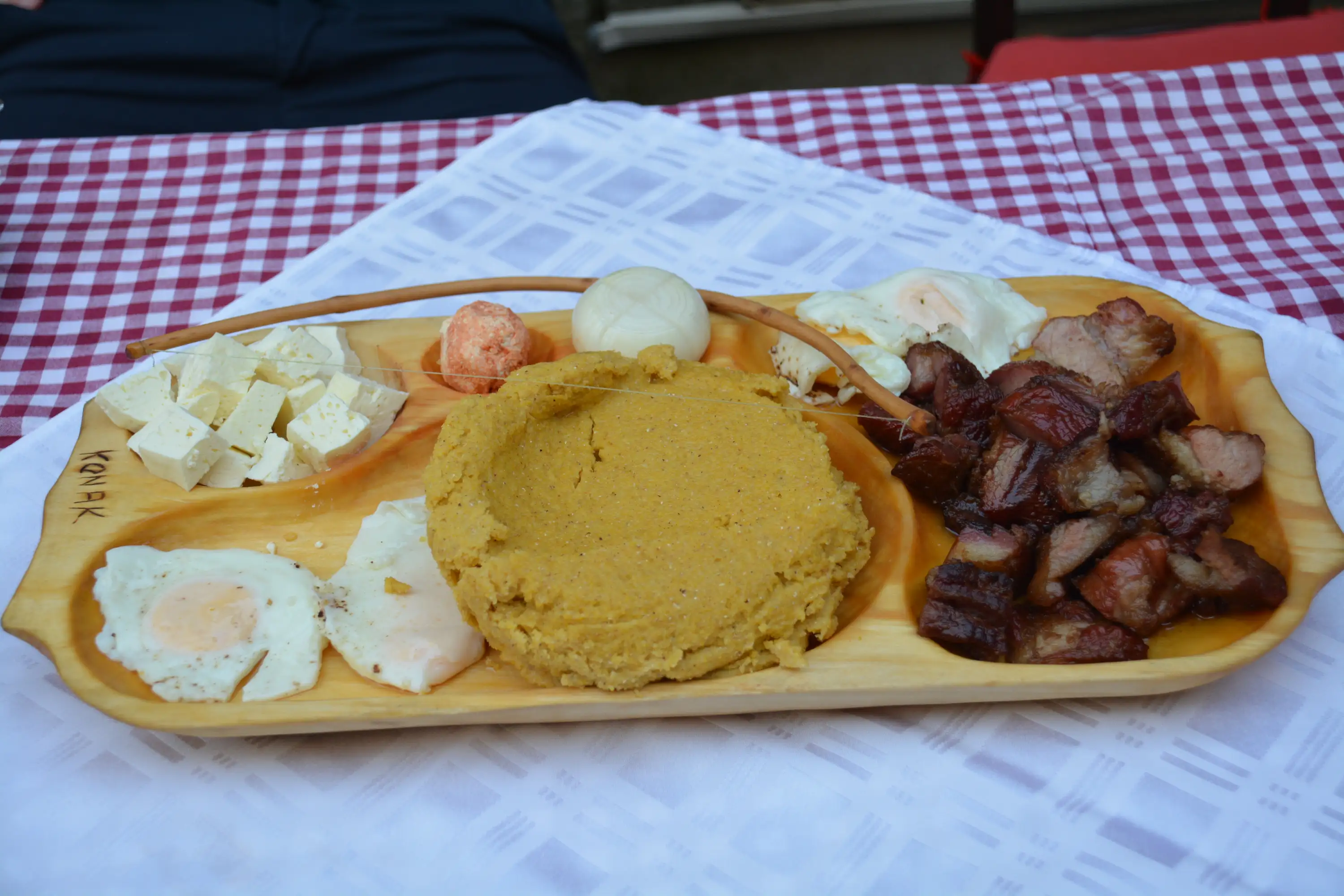 Ingrediente: Carne de porc, cârnați de casă (așa numitul “krnac” umplut cu bucățele de carne