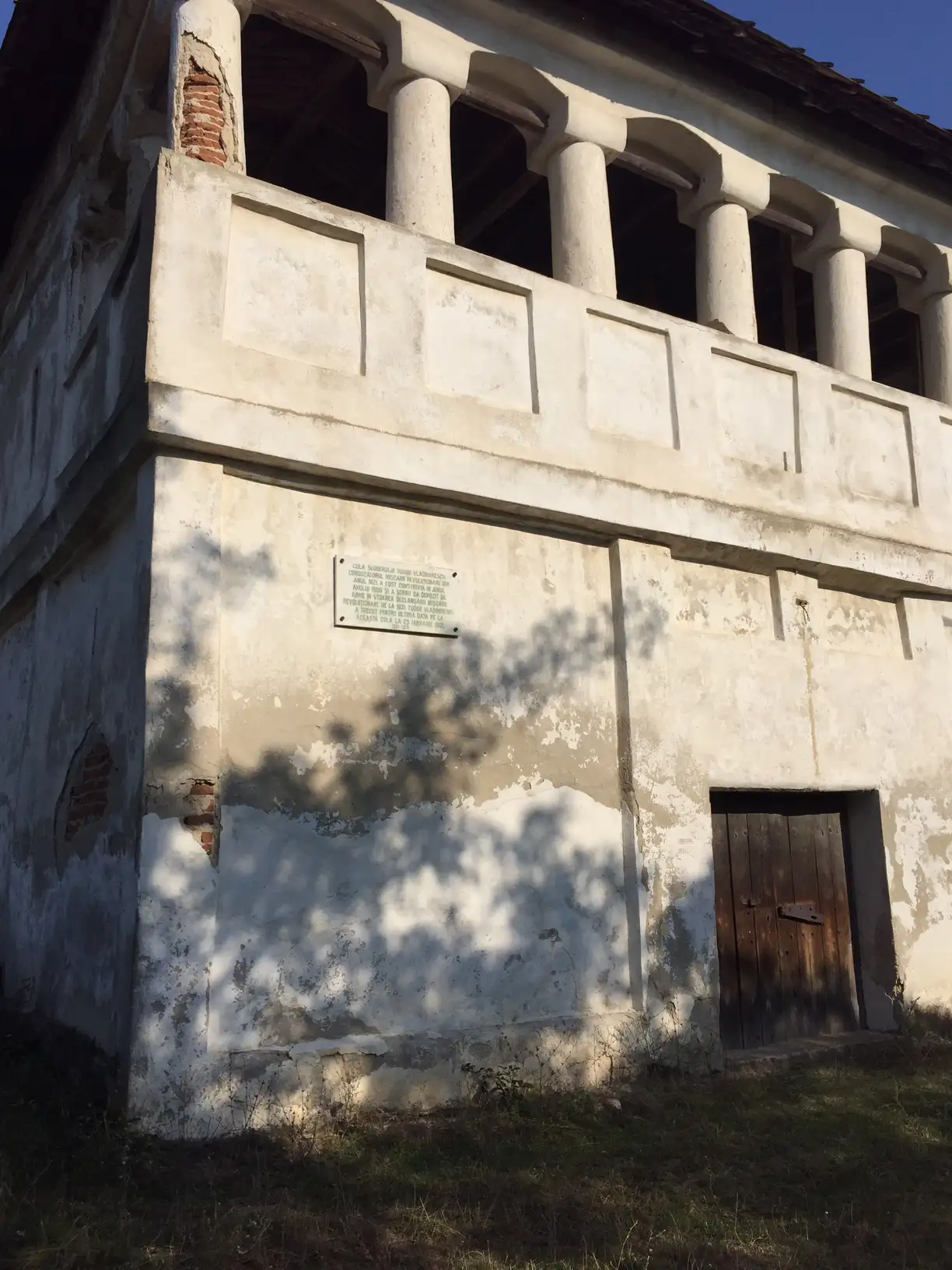 Description: The construction consists of the building itself with one level and a defense tower located in the south-east, which communicates with the fortified house through a corridor. Along with the „cula”, there were other dependencies, which today are no longer preserved. The „cula” was built of brick and wood. The ground floor consists of a large cellar, a room and the staircase that ends with a verandah. The 1st floor has a verandah with ten massive brick columns, three chambers and a narrow, long corridor at the end of which is a toilet or a “latrine”, as it used to be called. On the ground floor and the 1st floor there are several shooting gates (ramparts). The windows were enlarged after the fortified house lost its defense function. The ceilings of the ground floor are vaulted, while the ceilings of the 1st floor are made of wood. In 1967, the buiding was arranged as a museum dedicated to Tudor Vladimirescu, in which there were exposed several objects and personal documents of the Romanian Revolutionary. The museum functioned until 1977.
